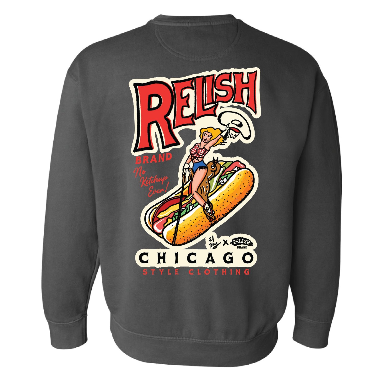 The Chi Rider design Collab with El Ray available on a crewneck sweatshirt