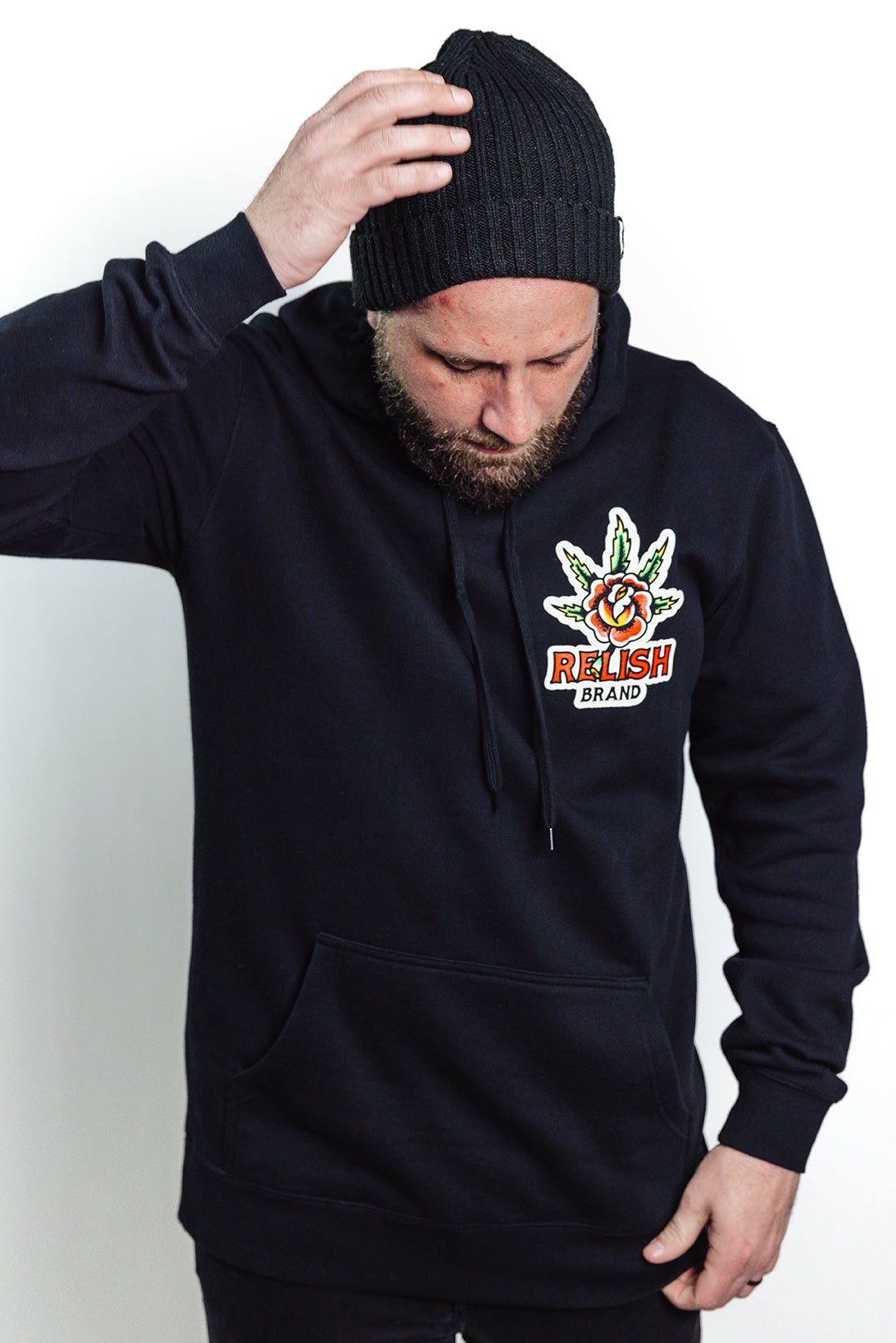 Pullover hood. inset sleeves. kangaroo pocket